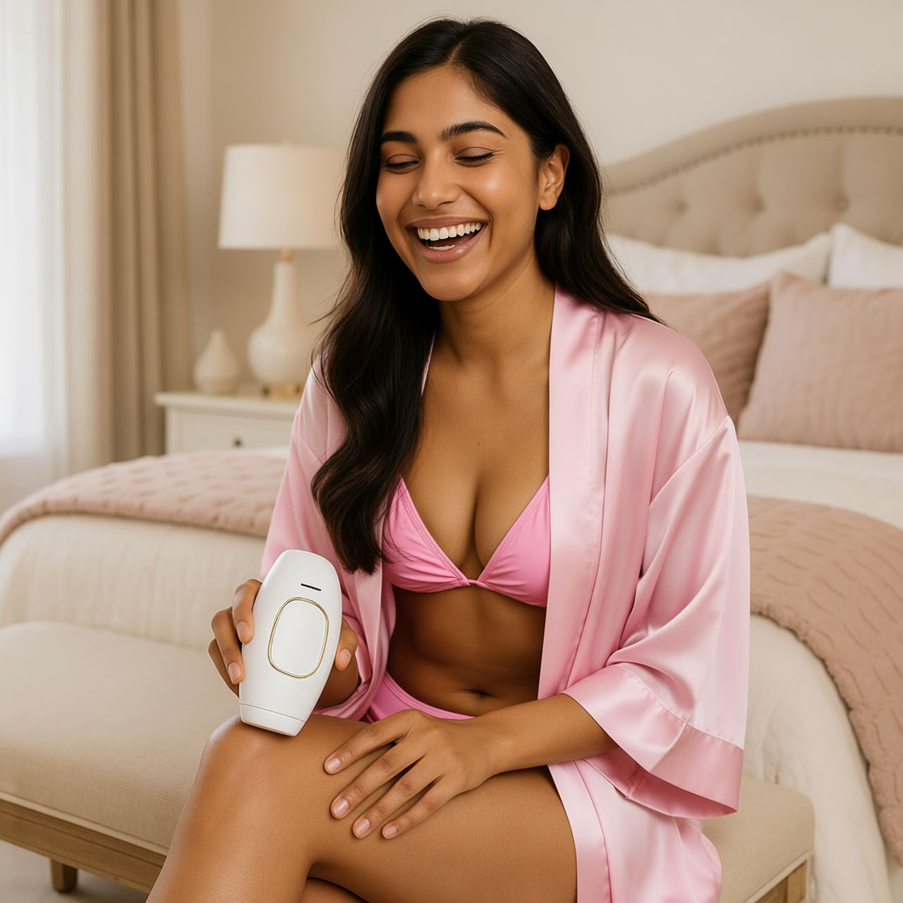 Im Gegensatz zu Wachsen oder Rasieren ist IPL nahezu schmerzfrei – keine Schnitte, Verletzungen oder Einreißen. Bei höheren Intensitätsstufen kann bei besonders empfindlicher Haut ein leichtes Wärmegefühl auftreten, niedrigere Stufen sorgen jedoch für eine angenehme und sanfte Behandlung.